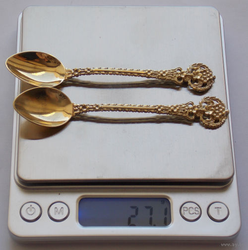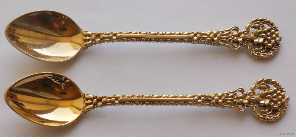 Пара кофейных ложечек 916 литьё позолота