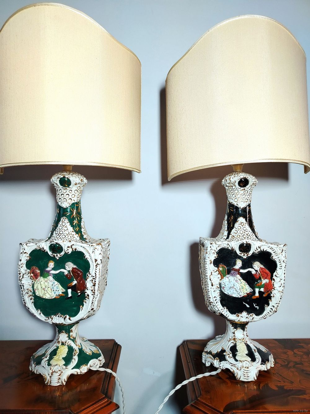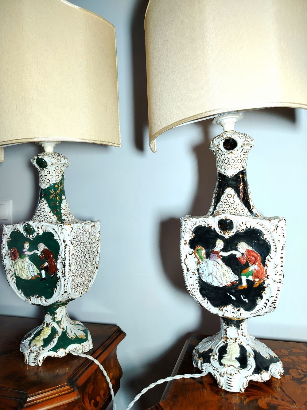 Пара винтажных ламп. Европа. Высота 77см ширина 36 см глубина 35 см. В отличном состоянии без дефектов и повреждений.