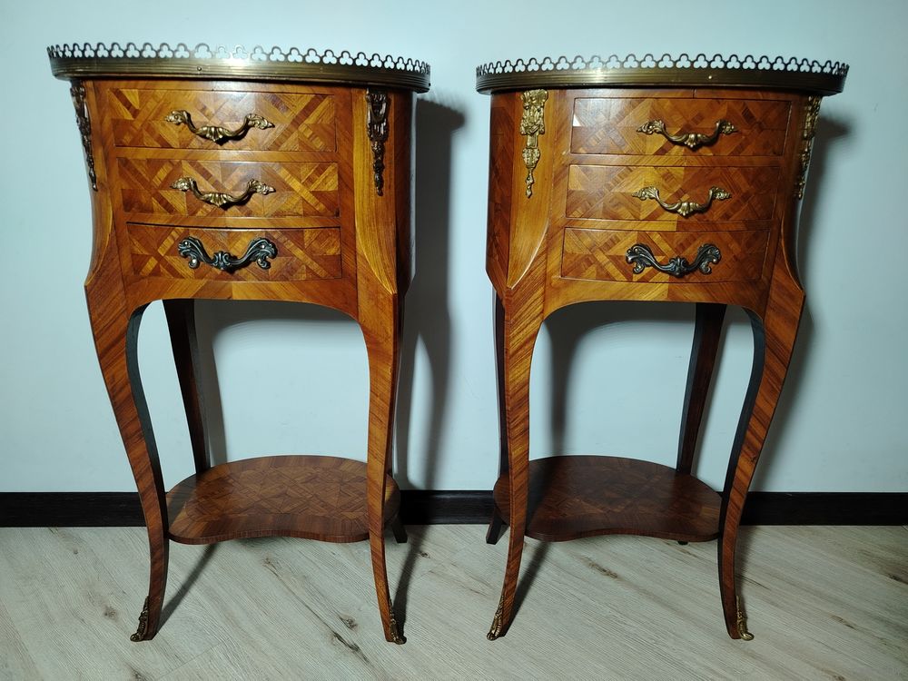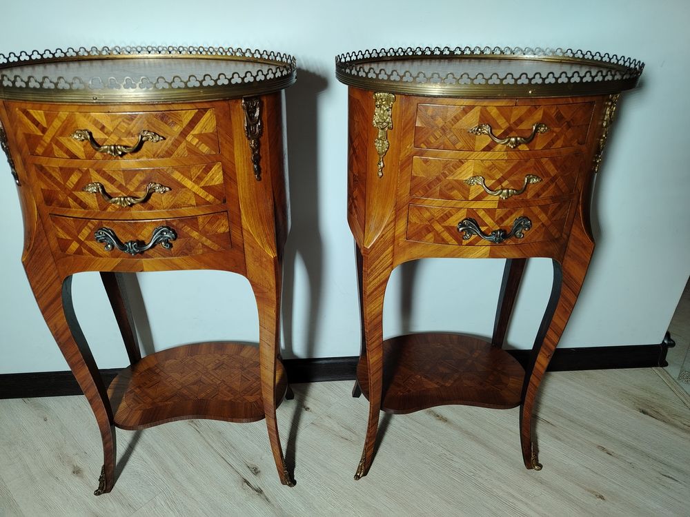 Пара старинных тумбочек. Франция. Массив дерева, техника маркетри, бронзовые элементы. Высота 70см ширина 40 см глубина 30 см.