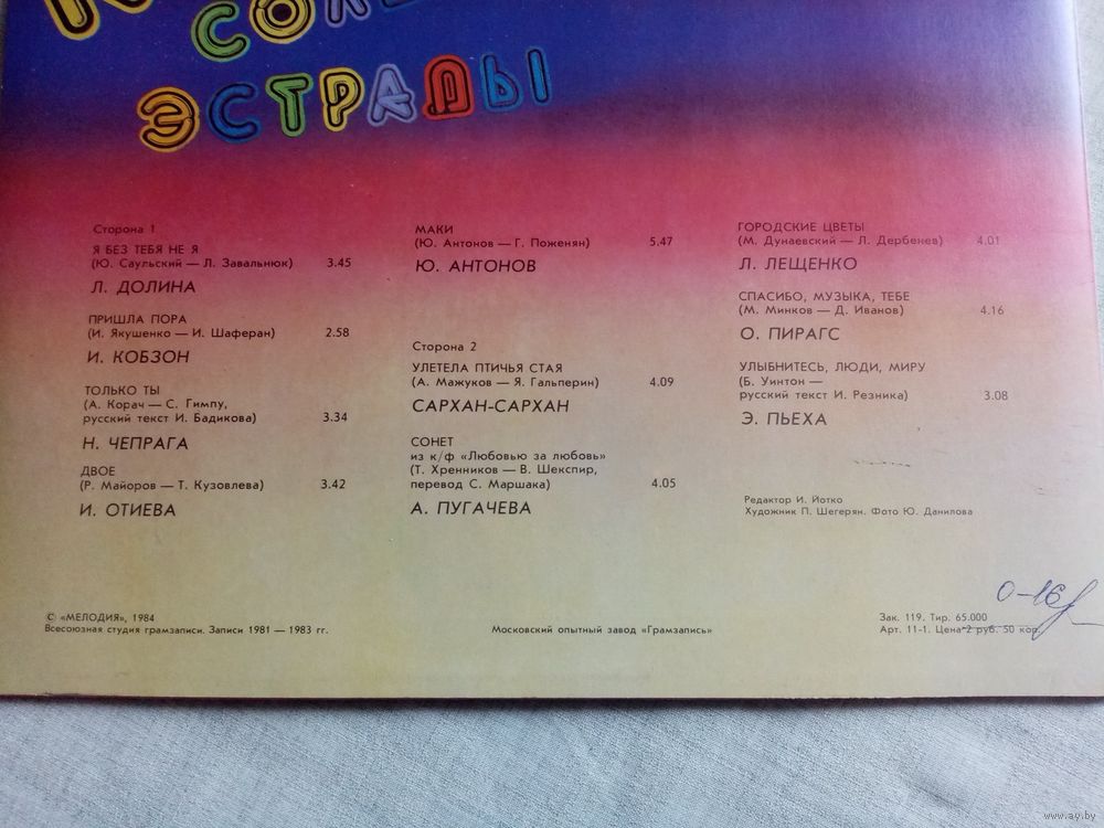 Парад солистов эстрады-2. LP 1984 г Л. Долина, И. Кобзон, Н. Чепрага, И. Отиева, Ю. Антонов, Сархан-Сархан, А. Пугачёва, Л. Лещенко, О. Пирагс, Э. Пьеха