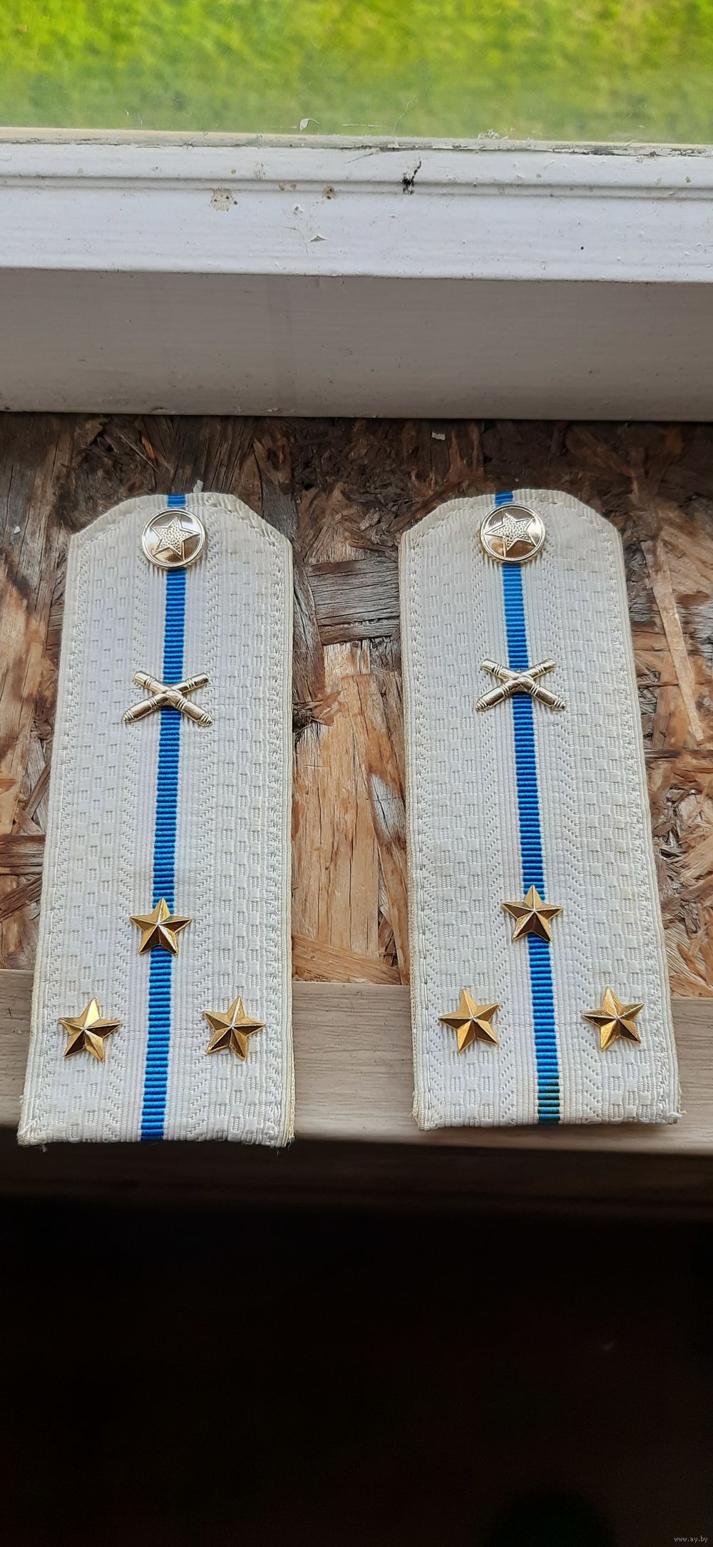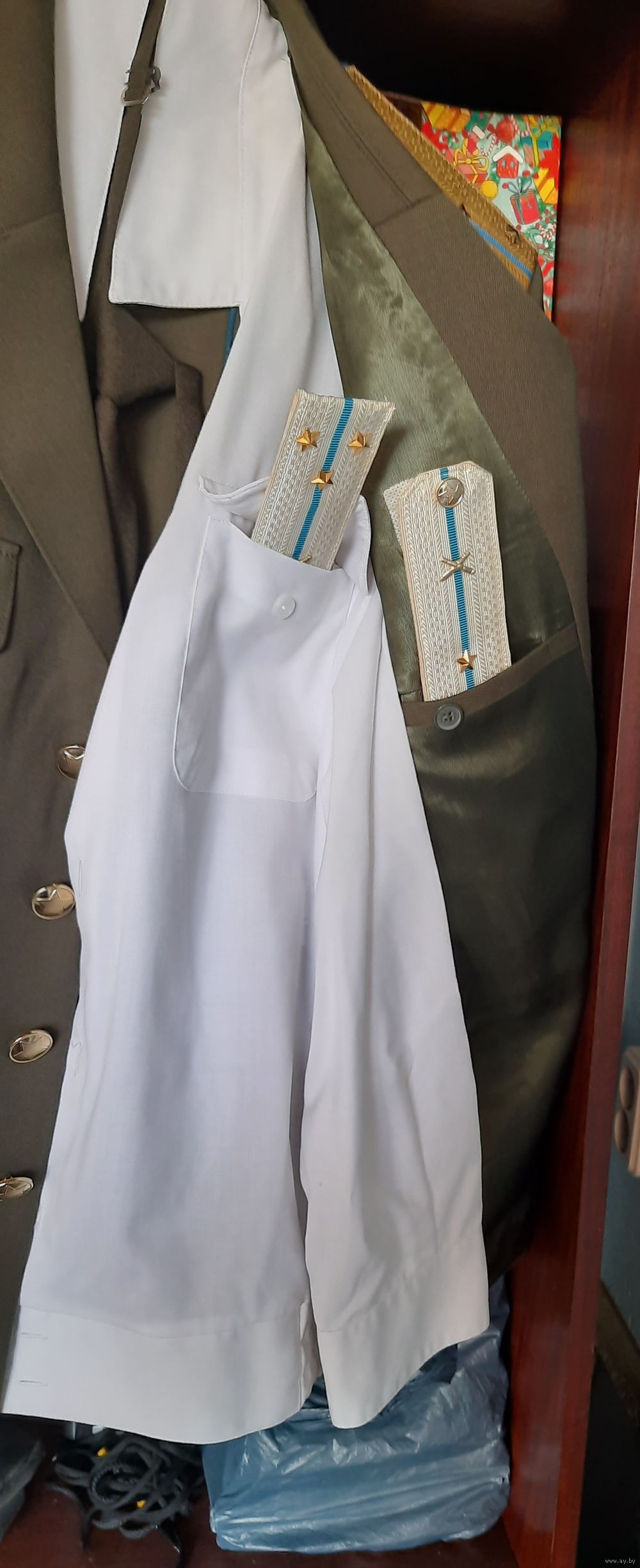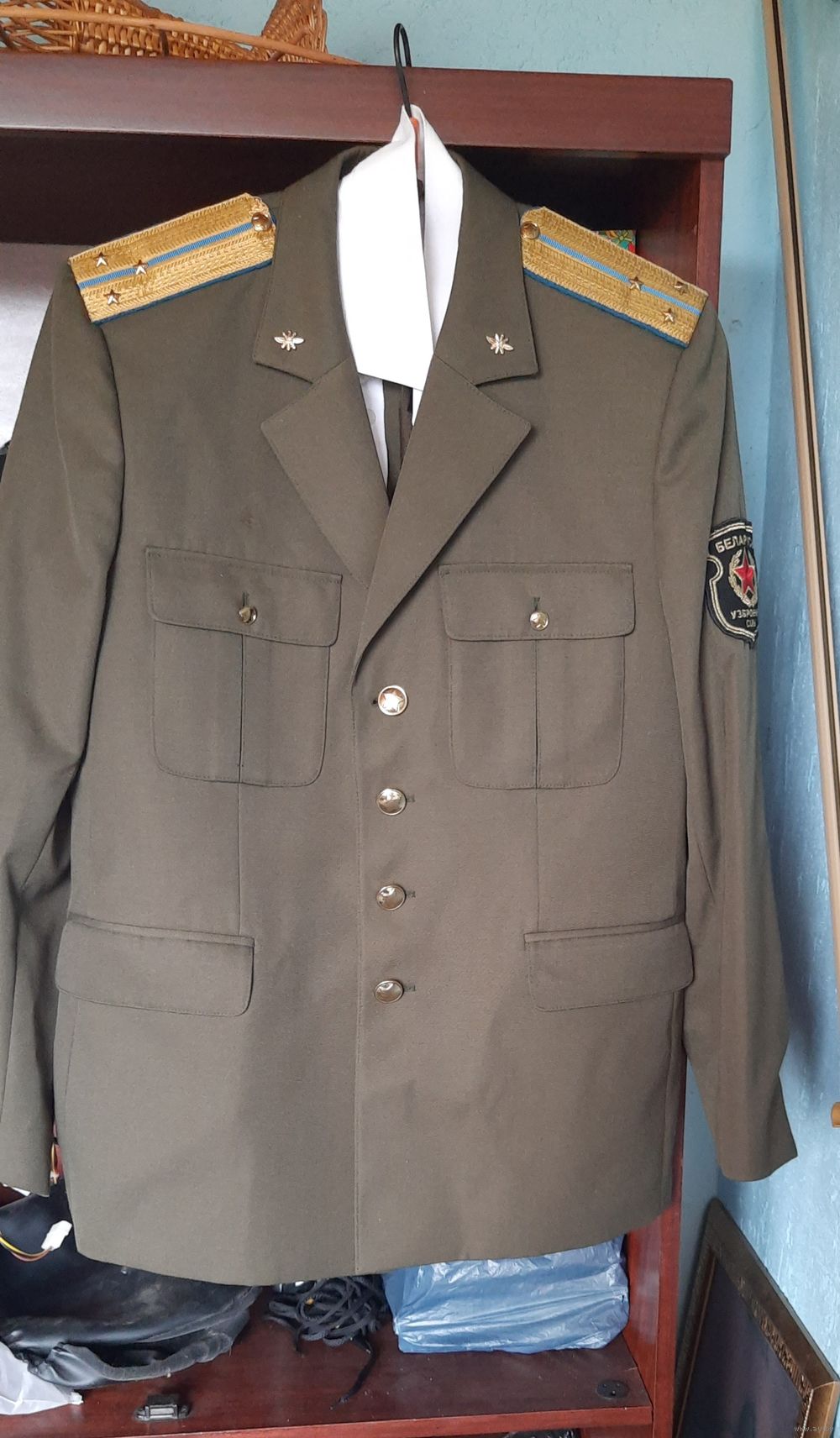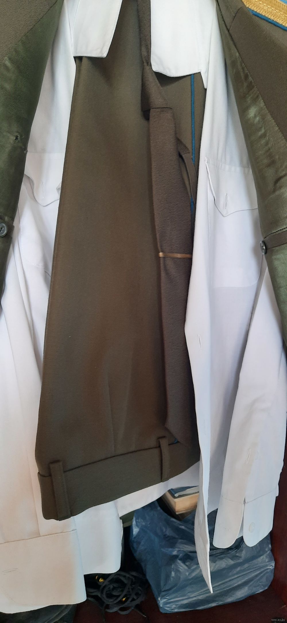 | В комплекте,:китель, рубашка с парадными пагонами, брюки (только на них сохранилась бирка с размером 170-92-80), галстук, чехол | |