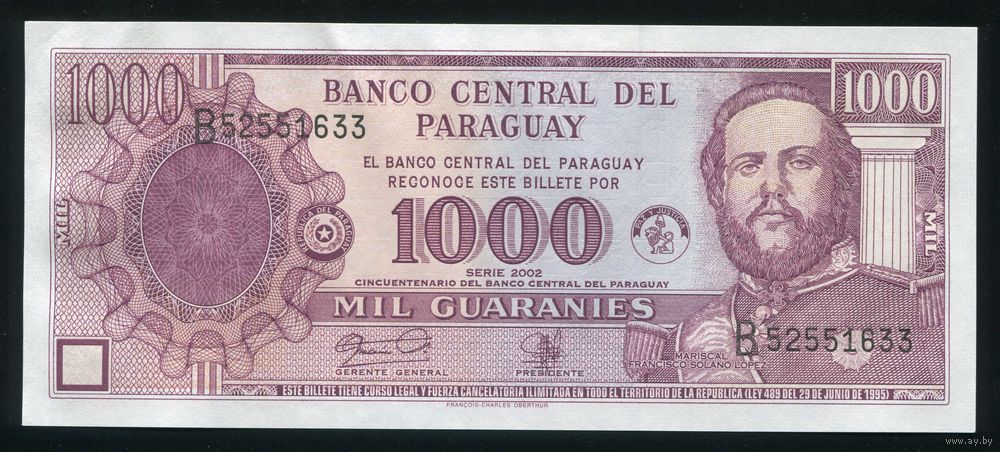 Парагвай 1000 гуарани 2002 г. P221. Серия B. UNC