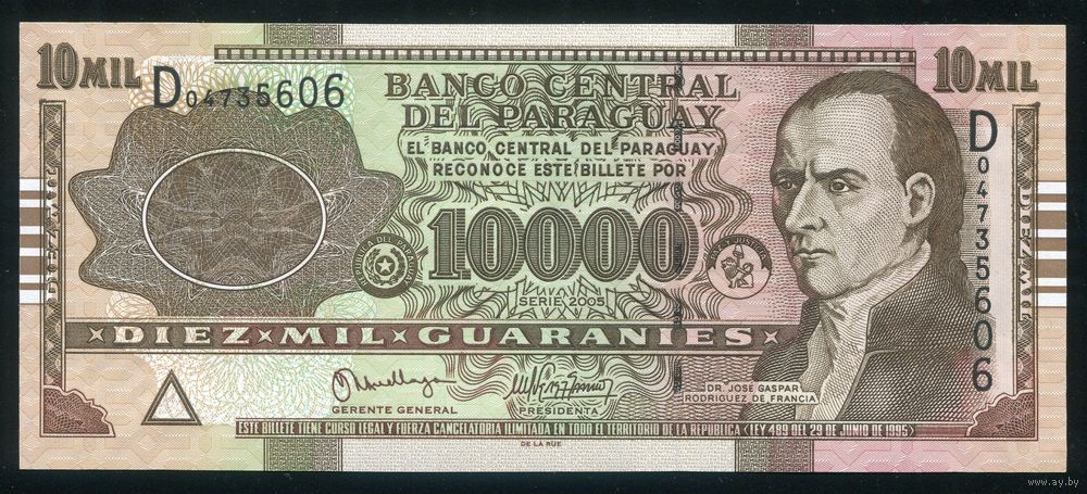 Парагвай 10000 гуарани 2005 г. P224b. UNC