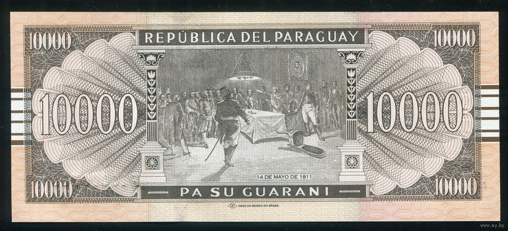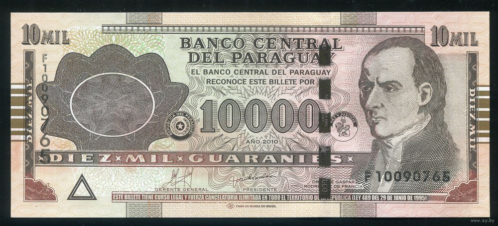 Парагвай 10000 гуарани 2010 г. P224d. UNC