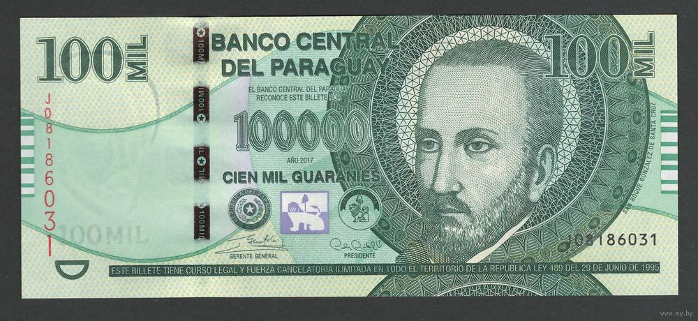 Парагвай 100000 гуарани 2017 года. Тип P-240. Состояние UNC!