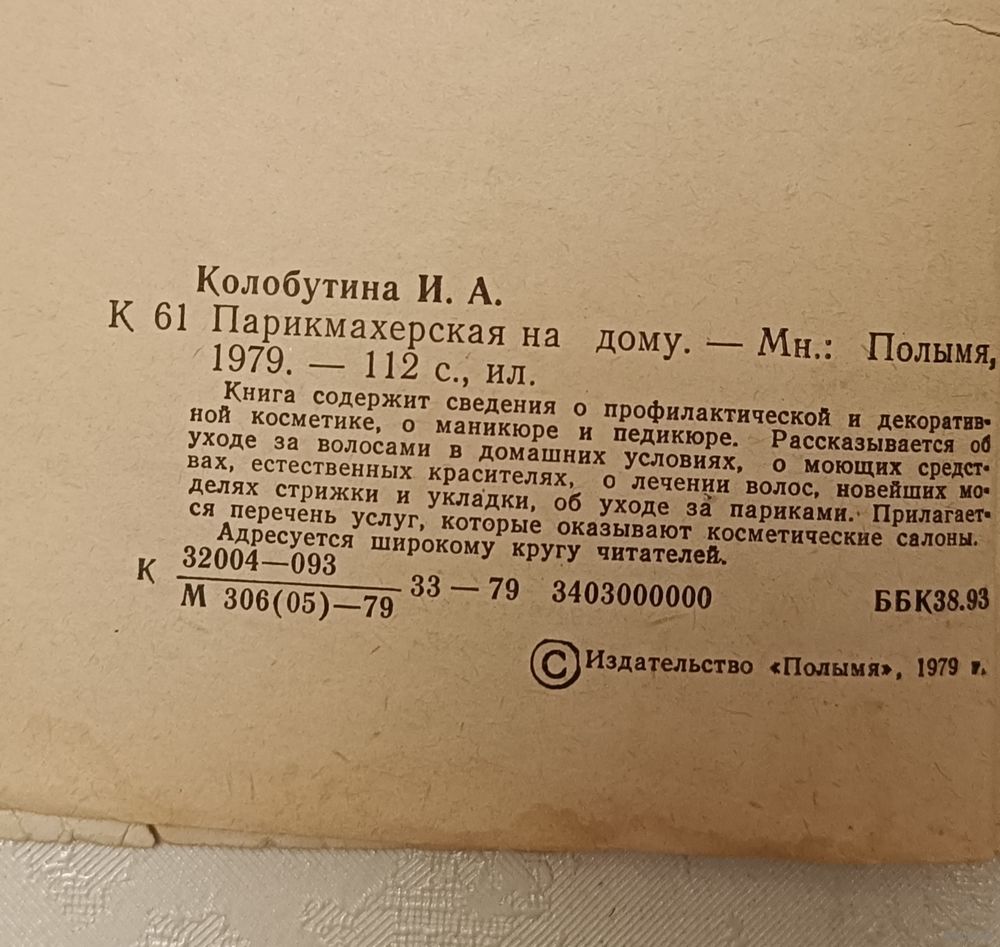 Колобутина Ирина. Парикмахерская на дому. Мн.: Полымя,1979. - 112 с., ил., мягкая обложка.