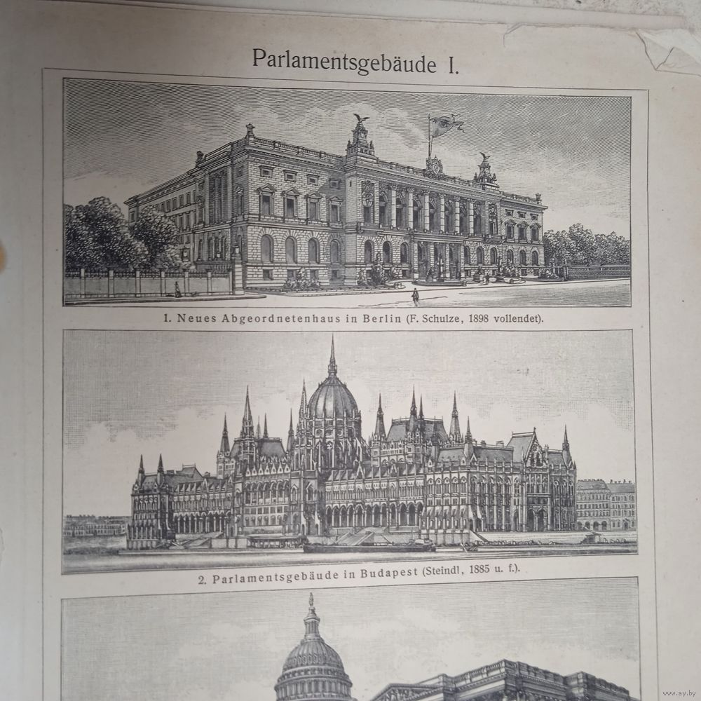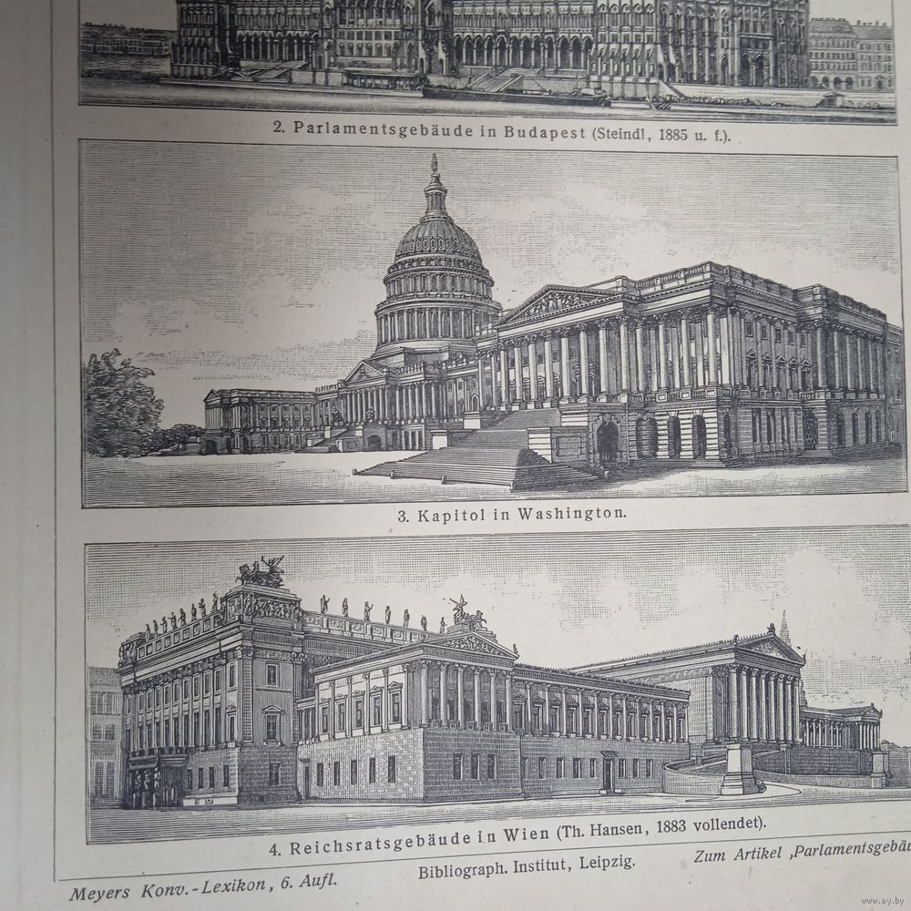 Parlamentsgebaude.Гравюра энциклопедическая 19-20век.24х17см. Германия.