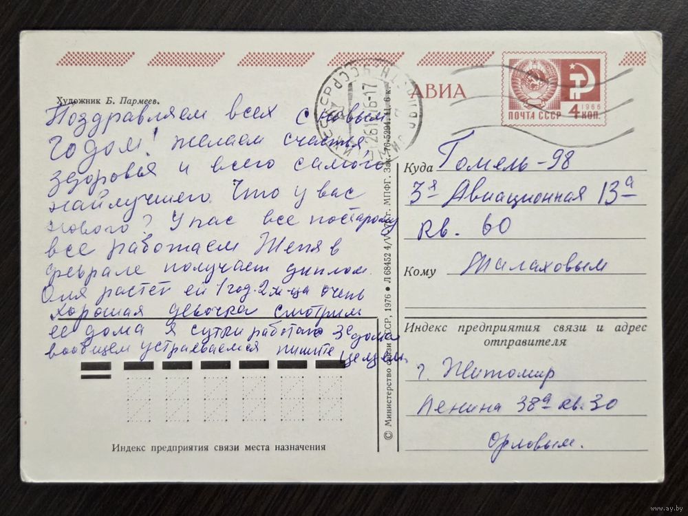 Пармеев С Новым годом 1976 подписанная открытка СССР