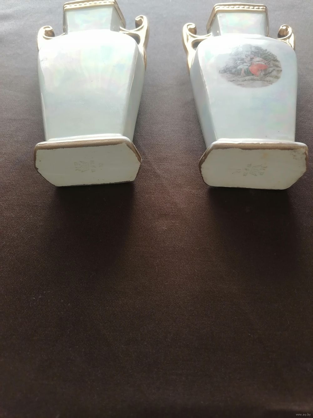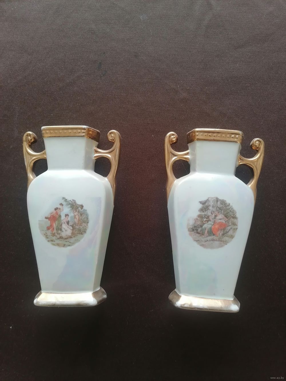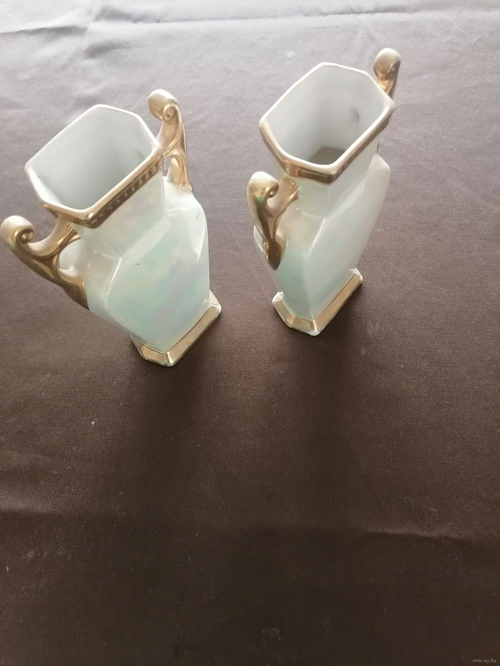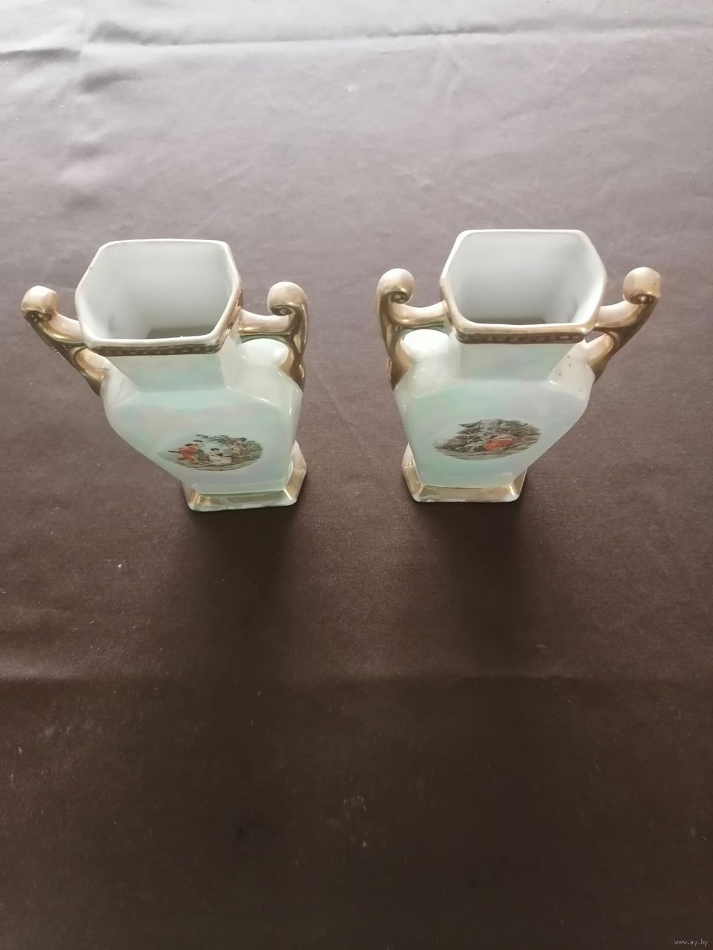 Цена за две шт. Высота 14 см. Очень миленькие вазочки. Трещин, сколов нет. Небольшие утраты позолоты.
