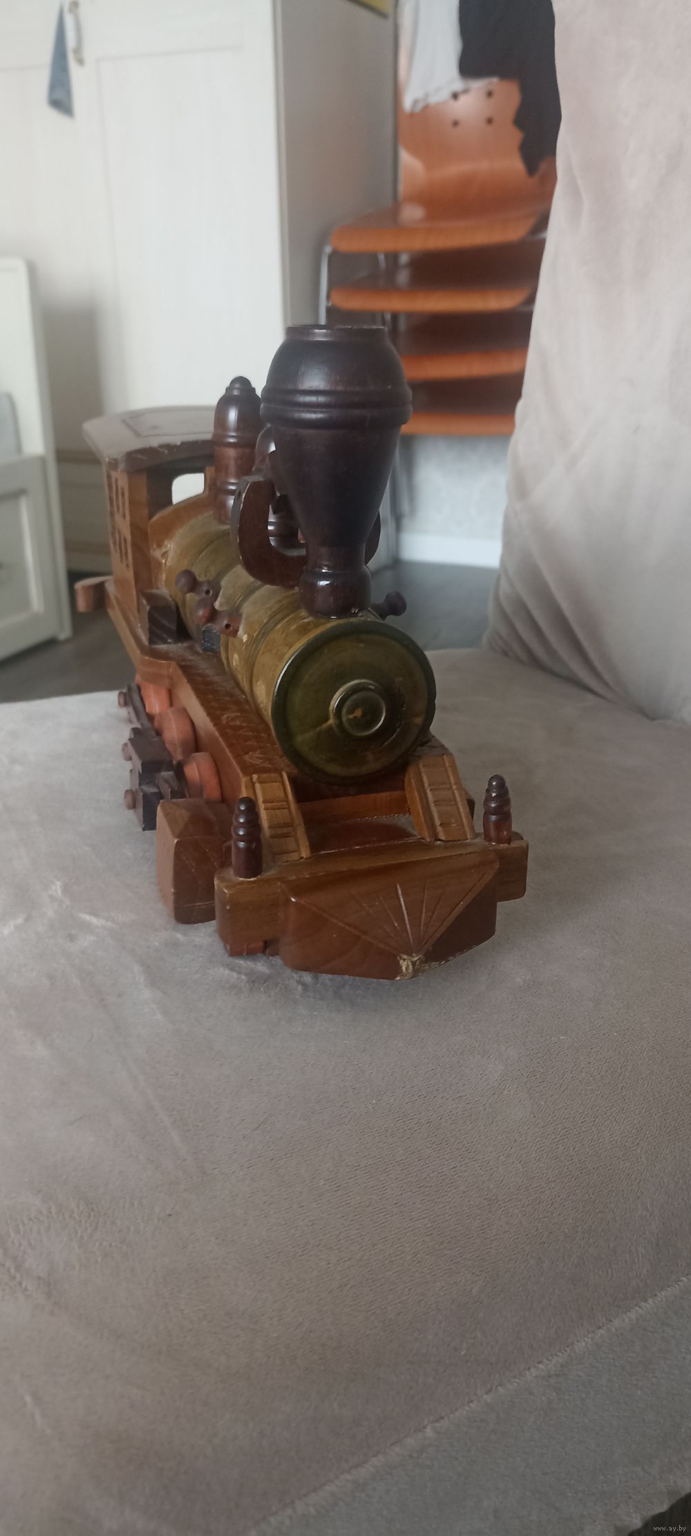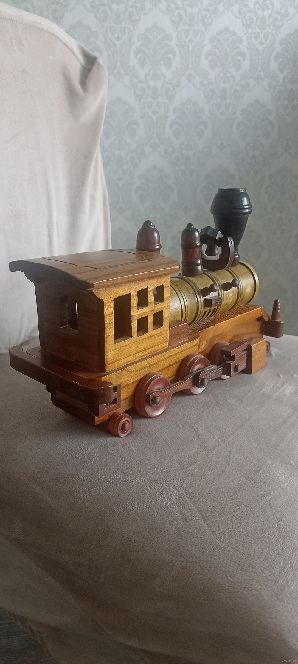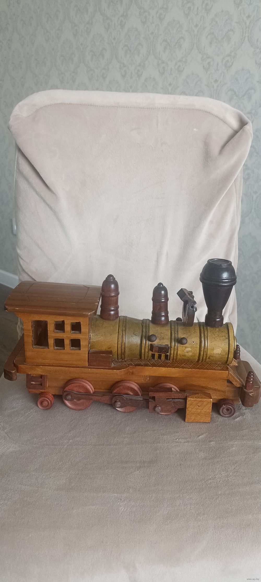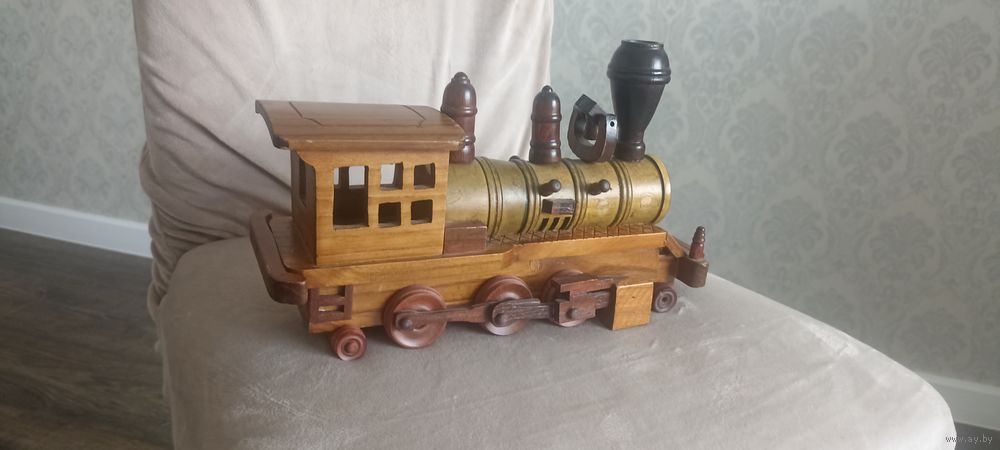 Винтажный паровоз из дерева в интерьер, коллекцию. Ручная работа. Длина 30 см, высота 28 см.