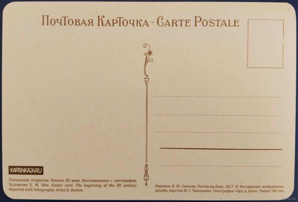 Пасхальная открытка. Елизавета Бём. Репринт. Россия. 2017 г.