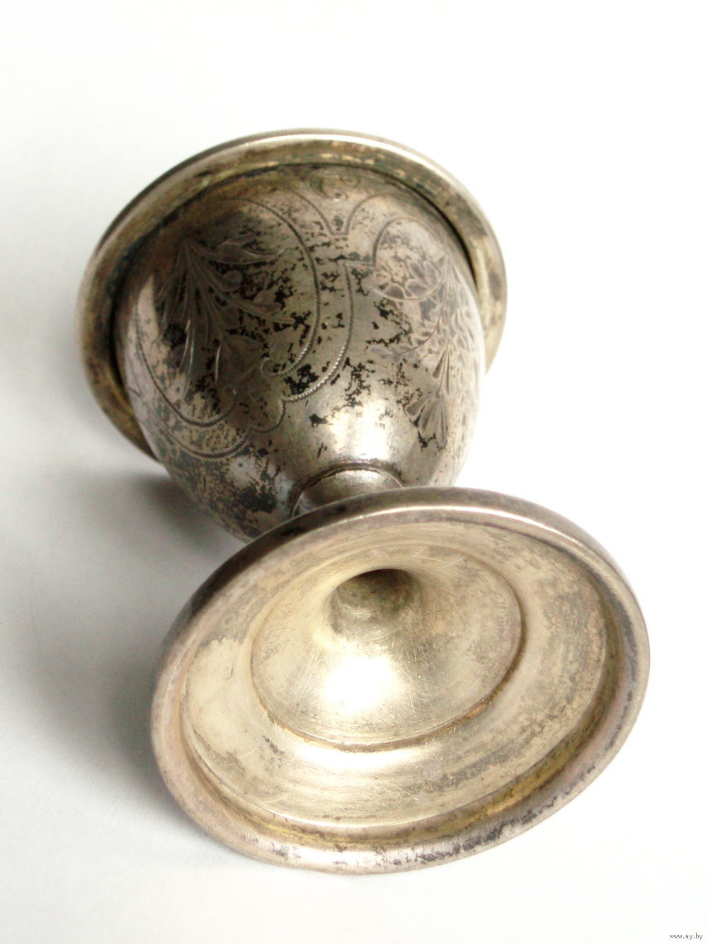 | Пашотница - форма для подачи яйца, приготовленного всмятку. Клеймо серебра «Дианакопф» и цифра 3. Серебро с красивой старой патиной. Вес 39,62 гр.. Высота 6,5 см | |