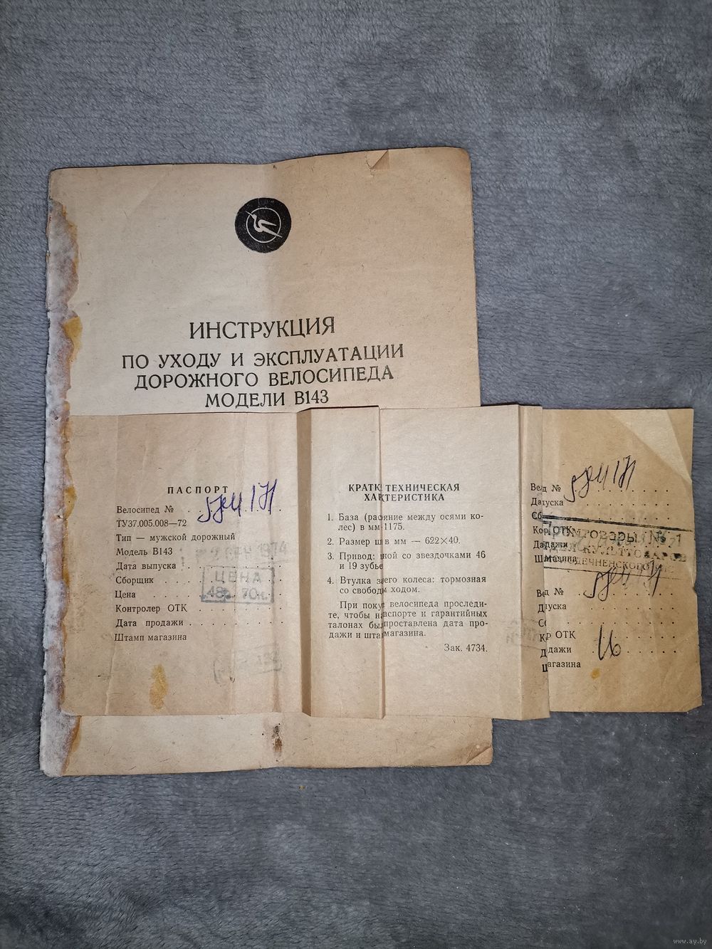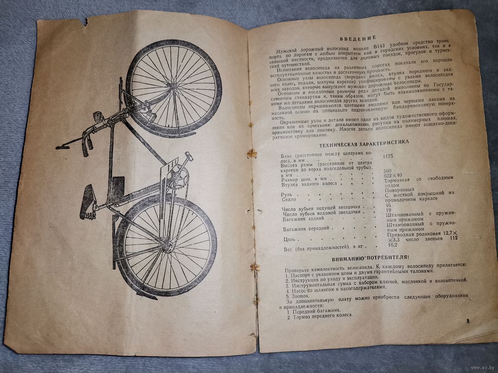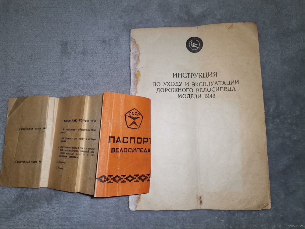Паспорт и Инструкция по уходу и эксплуатации дорожного велосипеда модели В143. 1974г. Состояние на фото. Отправка только Европочтой
