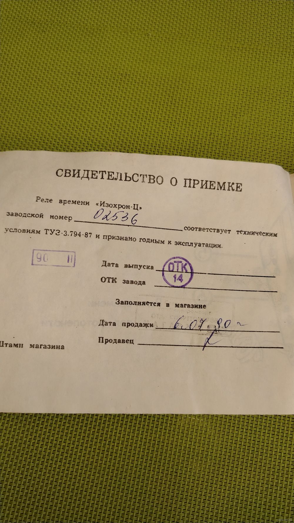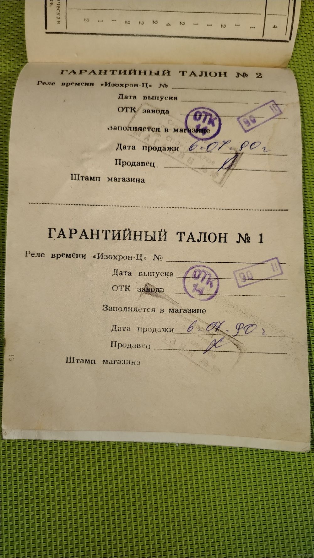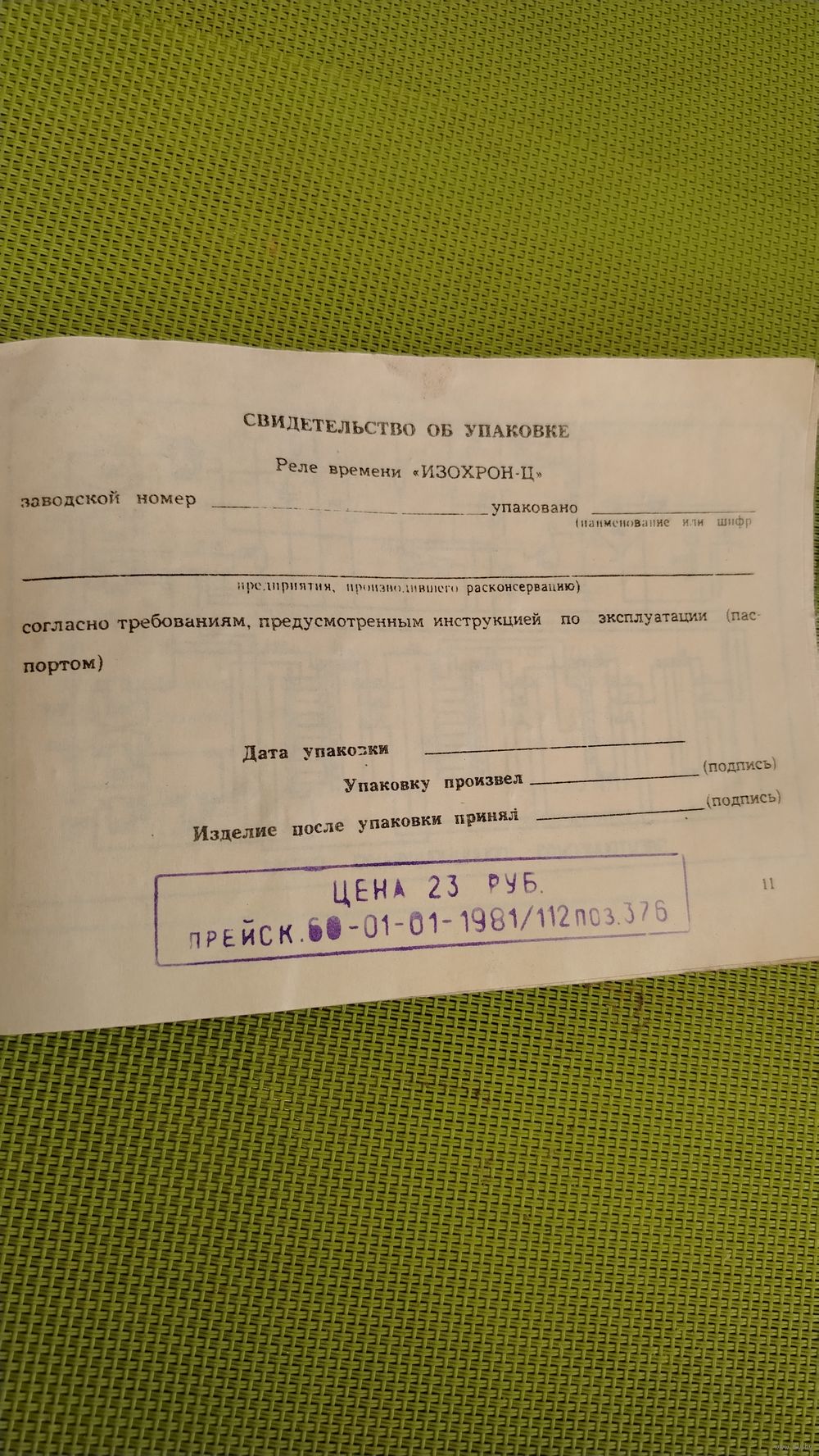 Паспорт. Изохрон-Ц. Электронное реле времени для фотопечати. 1990 г.