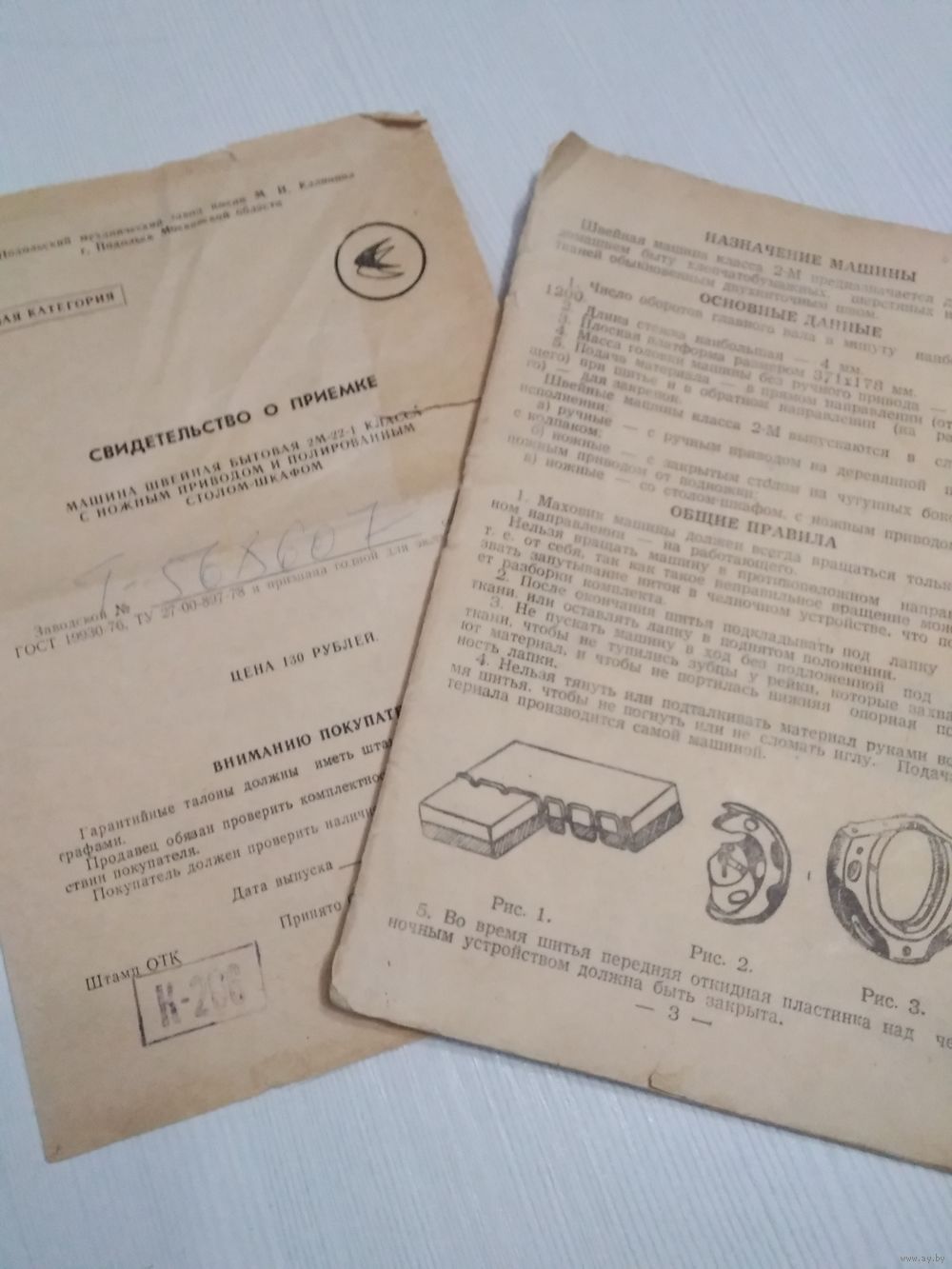 Паспорт "Машина швейная бытовая 2М-22-1". /ОП