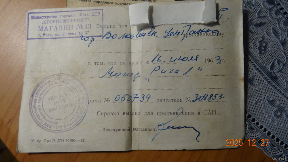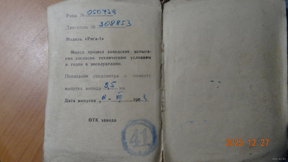 Паспорт Мопеда САРКАНА ЗВАЙГЗНЕ