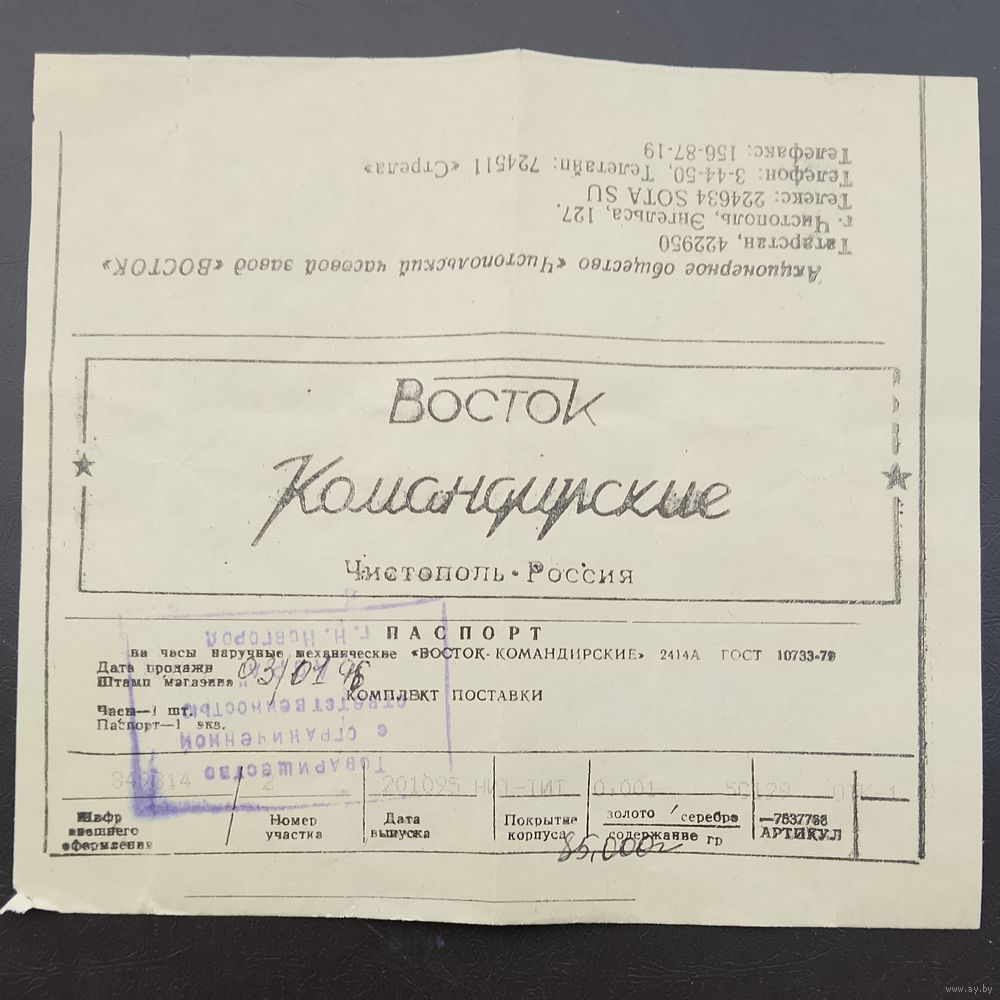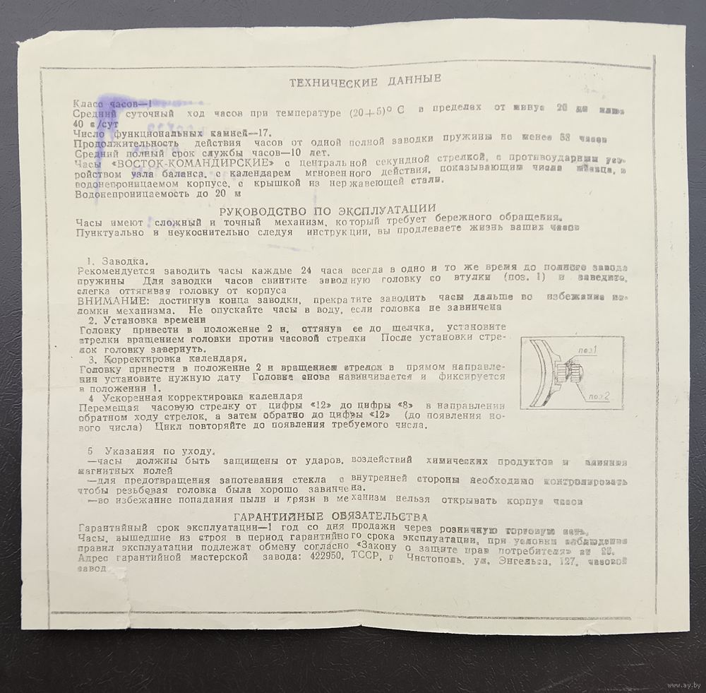 Паспорт на часы "ВОСТОК - КОМАНДИРСКИЕ" (Чистополь)