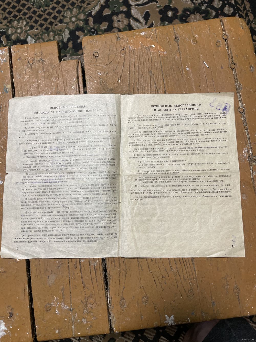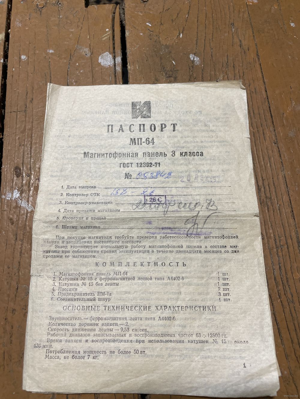 Паспорт на магнитофонную панель МП-64 СССР 1973