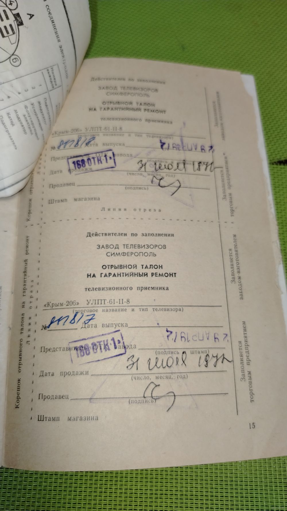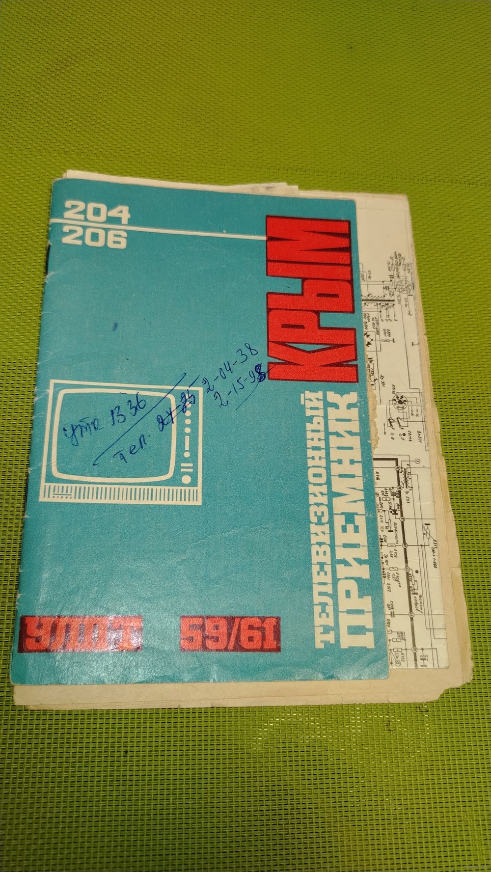 Паспорт телевизора КРЫМ-204/206 УЛПТ-59/61. 1972 г.