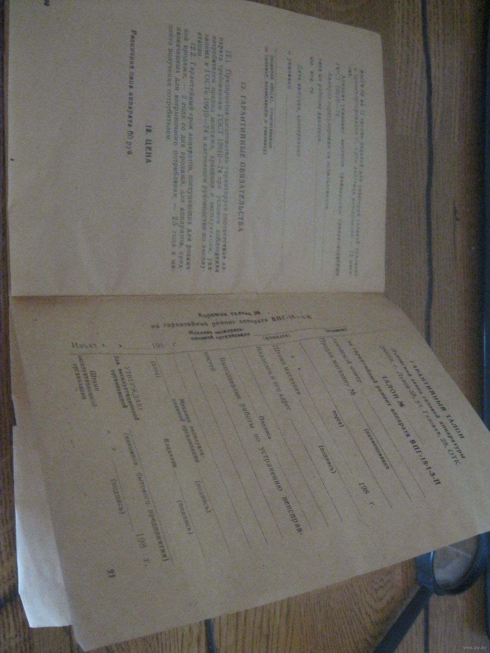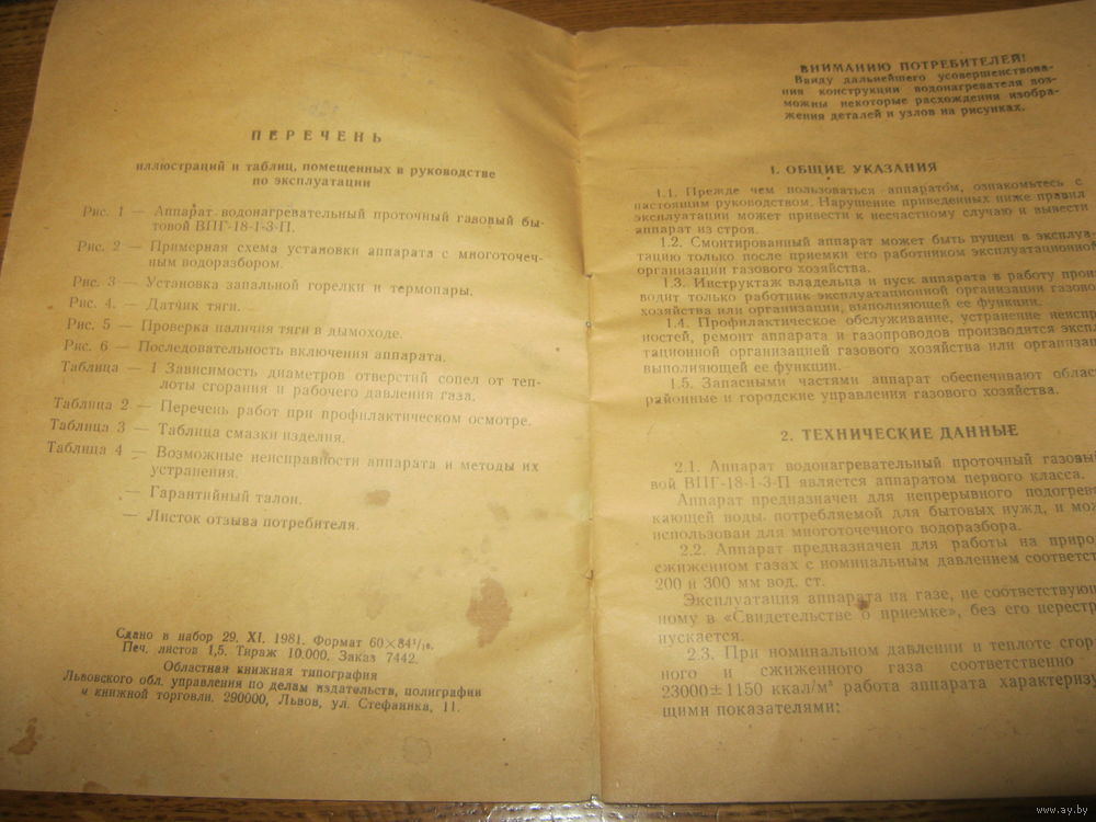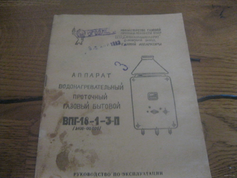Паспорт газовая колонка ВПГ-18-1-3-П в приемлемом сост. дефекты на фото пятна а так еще крепкая книжечка .ПО ПОЧТЕ НЕ ОТПРАВЛЯЮ ВООБЩЕ.Только самовывоз в будние дни и очень редко выходные г.Минск ул.П.Панченко .Без обмена не интересует.Без торга !!!!!