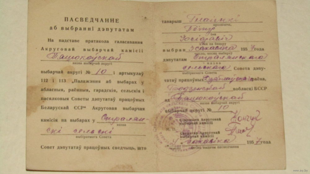 Пасведчанне аб выбранни дэпутатам 1957г.