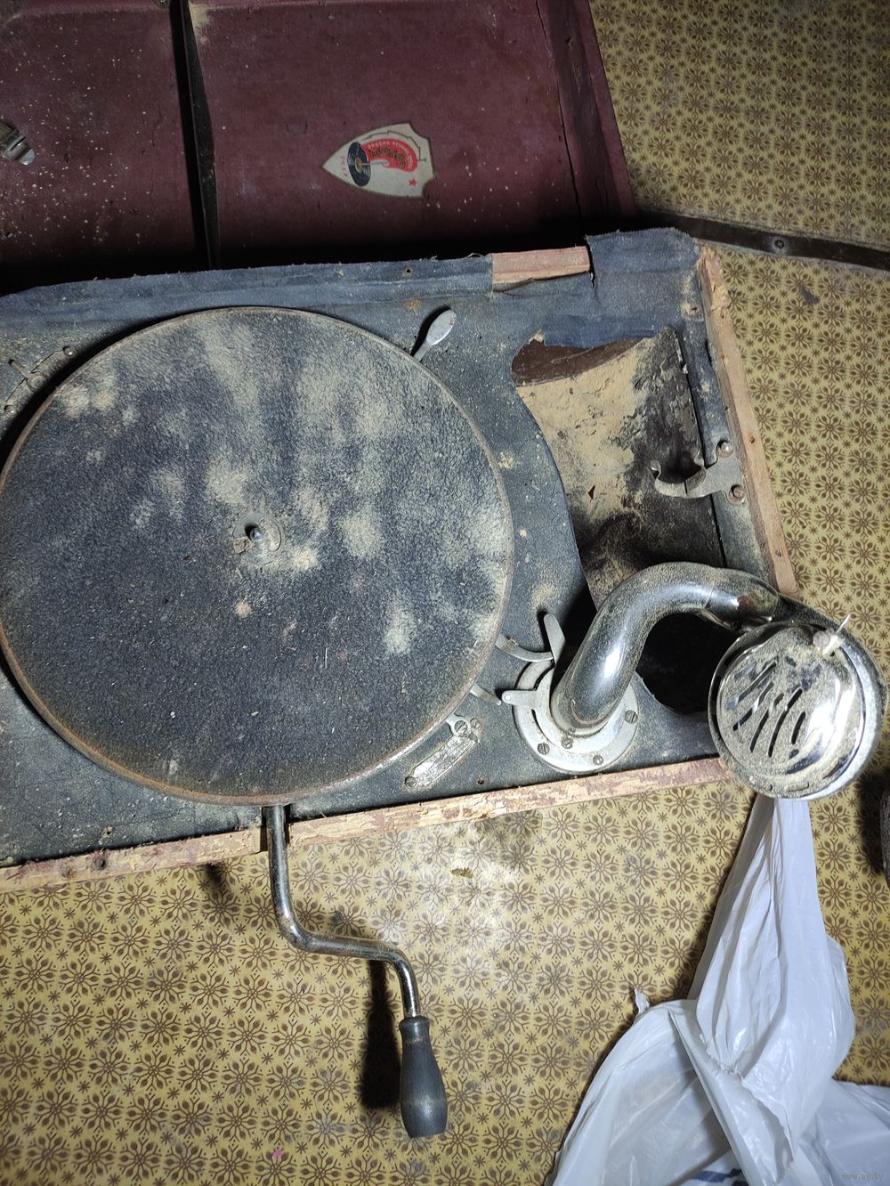 Всё работает, крутится при заводе ручкой. Но состояние конечно коробки из-за времени оставляет желать лучшего.