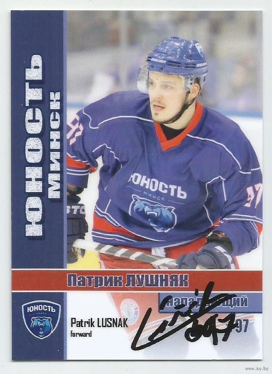 Патрик Лушняк / ХК "Юность" Минск / Карточка с живым автографом/ Сезон 2014-2015гг.