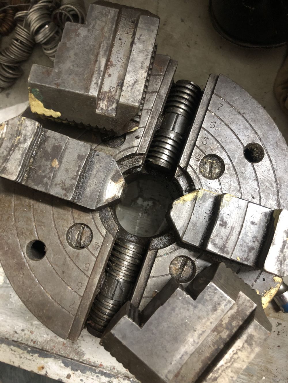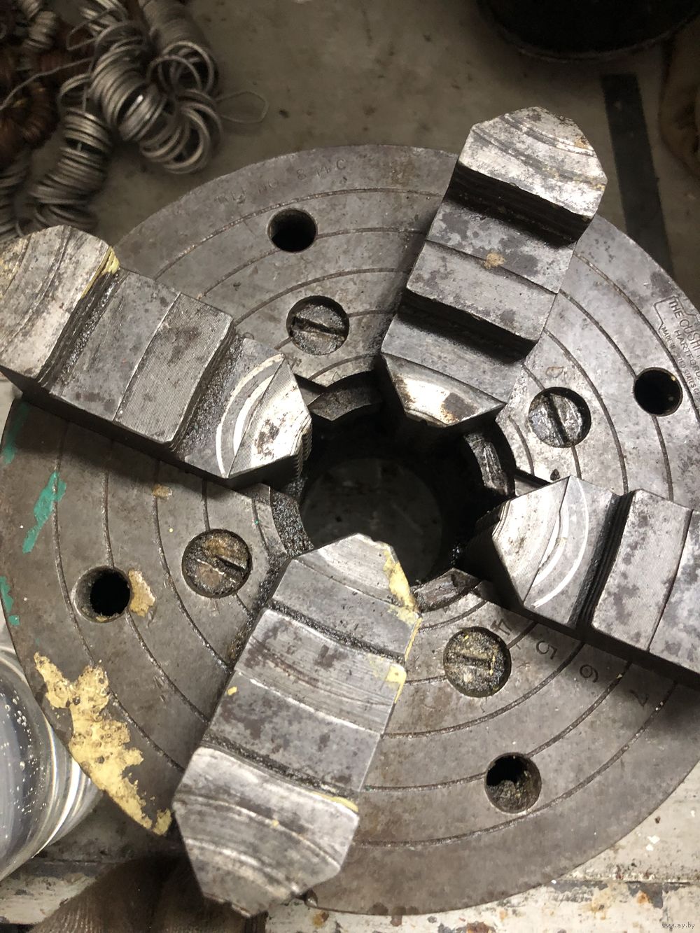 Это 8-дюймовый токарный патрон с четырьмя независимыми кулачками и креплением с плоской задней частью.