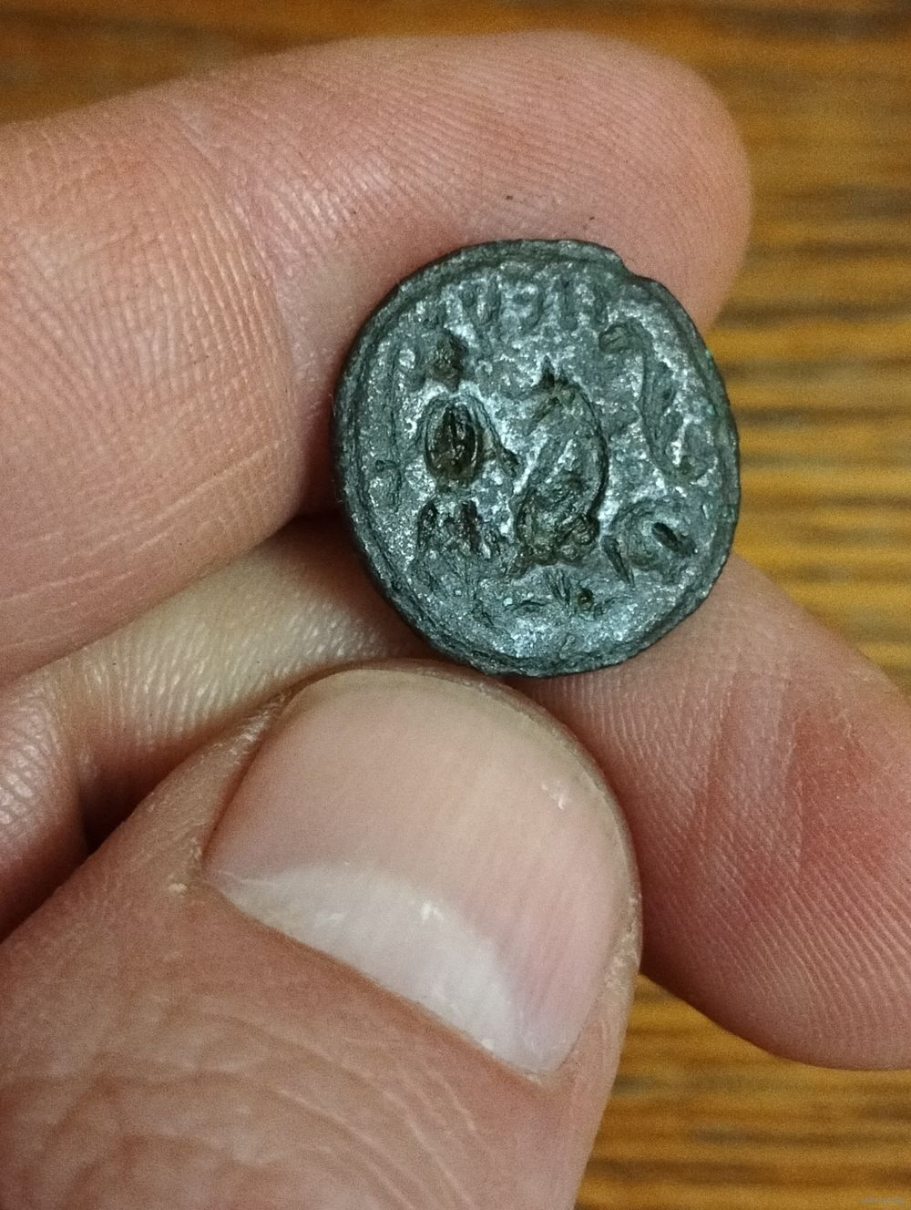 | Изображен воин с мечем, рядом волк или собака...инициалы и роспись | |