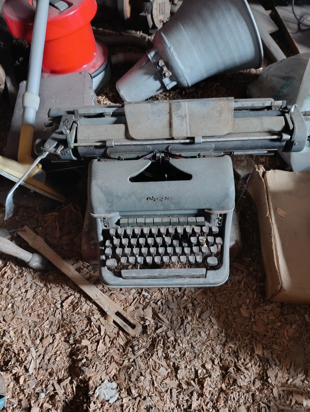 Машинка олимпия, состояние на фото, чердачное хранение, кнопки нажимаются но назад надо отводить вручную