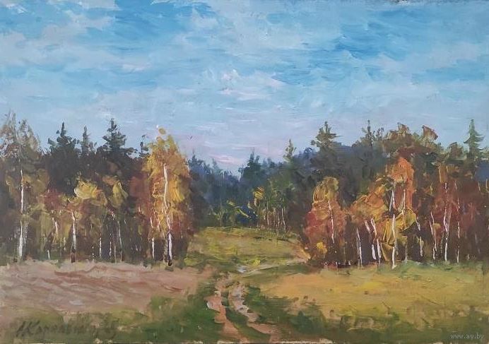 Картина "Пейзаж 13" двп, масло, размер 21х30 см.