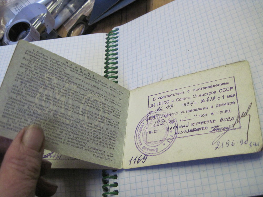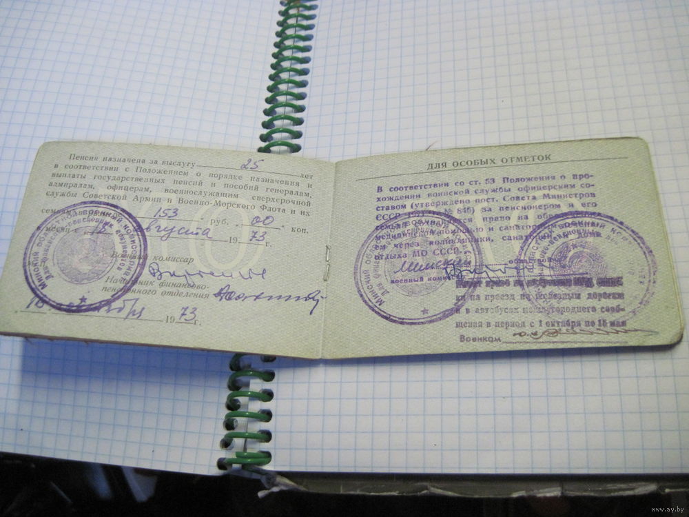 Пенсионное удостоверение МО СССР 1973 г. Торги!