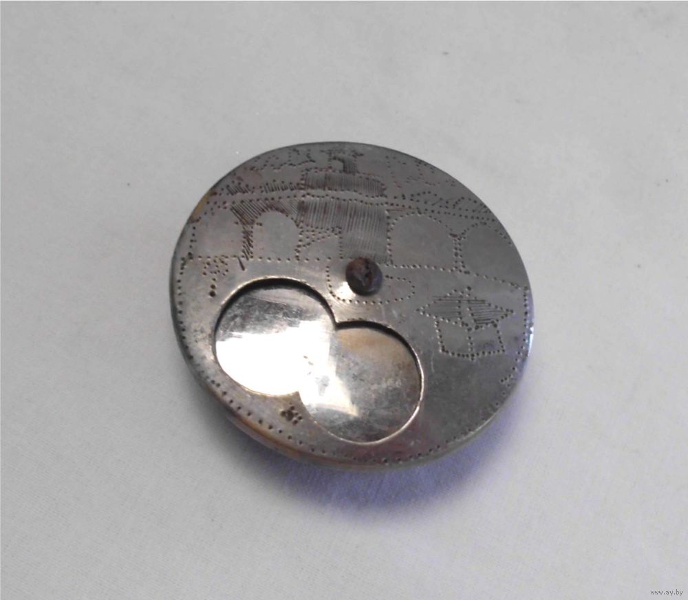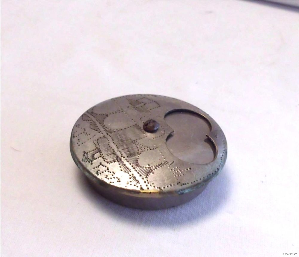 Латунь, штамп, никелирование, гравировка.