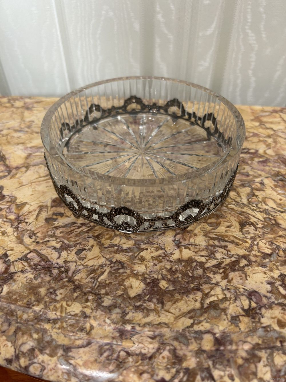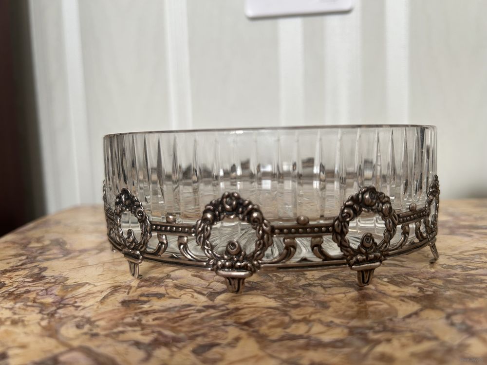 пепельница хрусталь серебро 835 проба 14/5см вес серебра 40гр