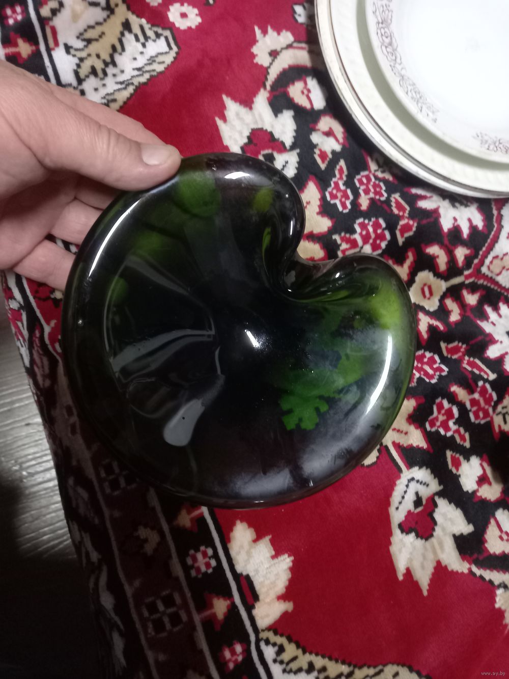 Пепельница старинная тяжелое зеленое стекло в виде сердца разумный торг