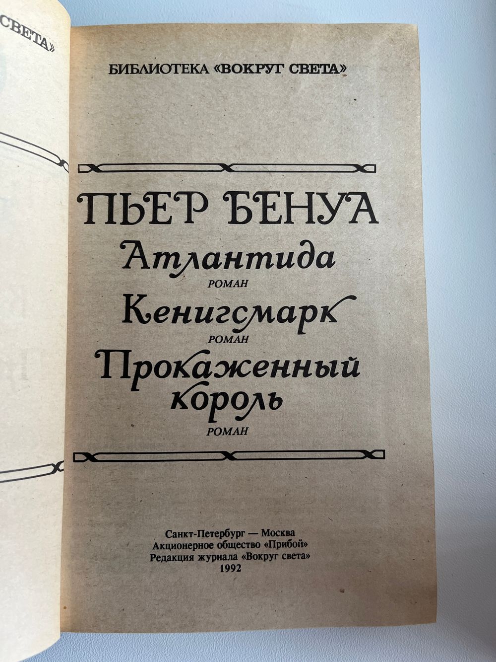 В сборник вошли три романа известного французского писателя Пьера Бенуа, написанные в конце XIX начале XX века. За роман "Атлантида" автор был удостоен "Большой премии" Французской академии. П.Бенуа — мастер традиционного "прямолинейного повествования", остросюжетного приключенческого рассказа со множеством хитросплетений, исторических и географических подробностей, помогающих читателю ощутить прелесть далекого и близкого прошлого. Герои Бенуа — сентиментальные идеалисты и романтики, а героини — исполненные страстей жестокие властительницы человеческих дум и сердец.