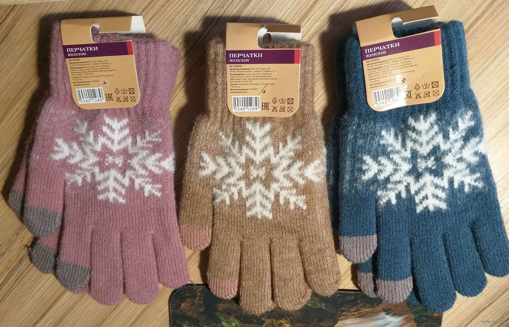Перчатки с узором, новые-3пары, теплые, бежевые-синие-розовые, длина перчатки-21.5см, длина пальцев-5.5см, тянутся.