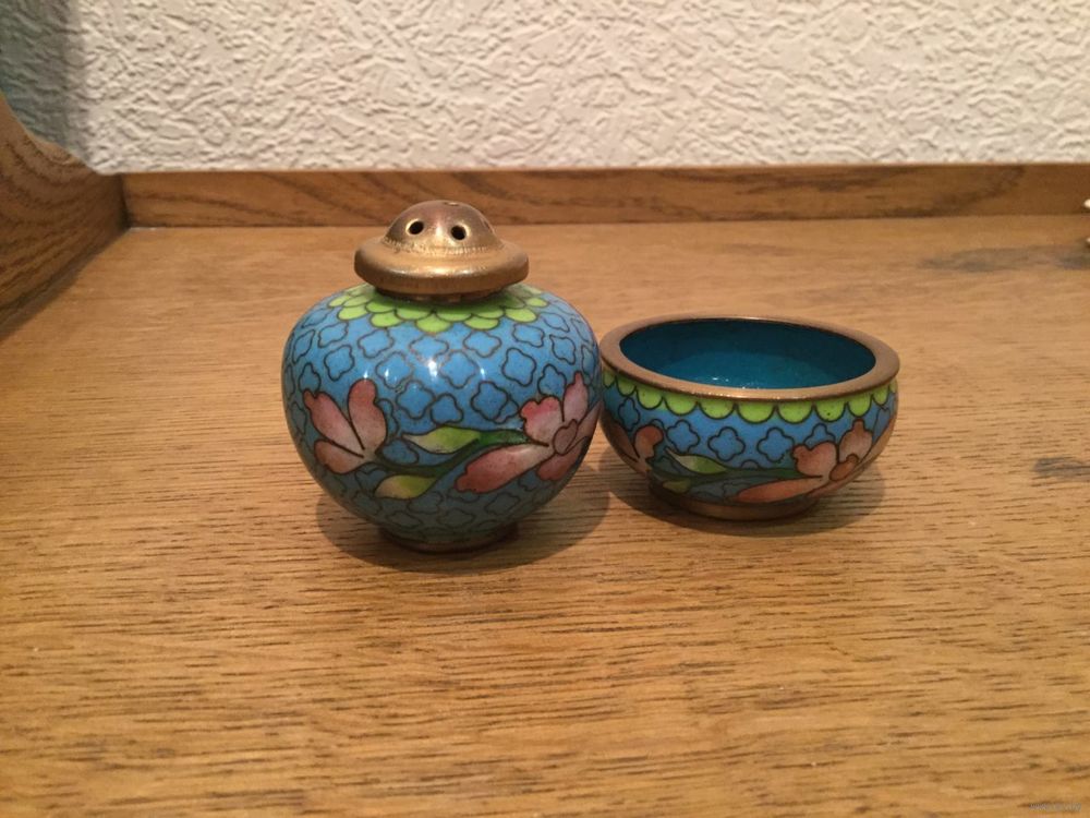 Оригинальная латунная перечница (или солонка) формы выполненная в технике Клуазоне - перегородчатая эмаль. Советский Китай, 70 - е годы прошлого века.