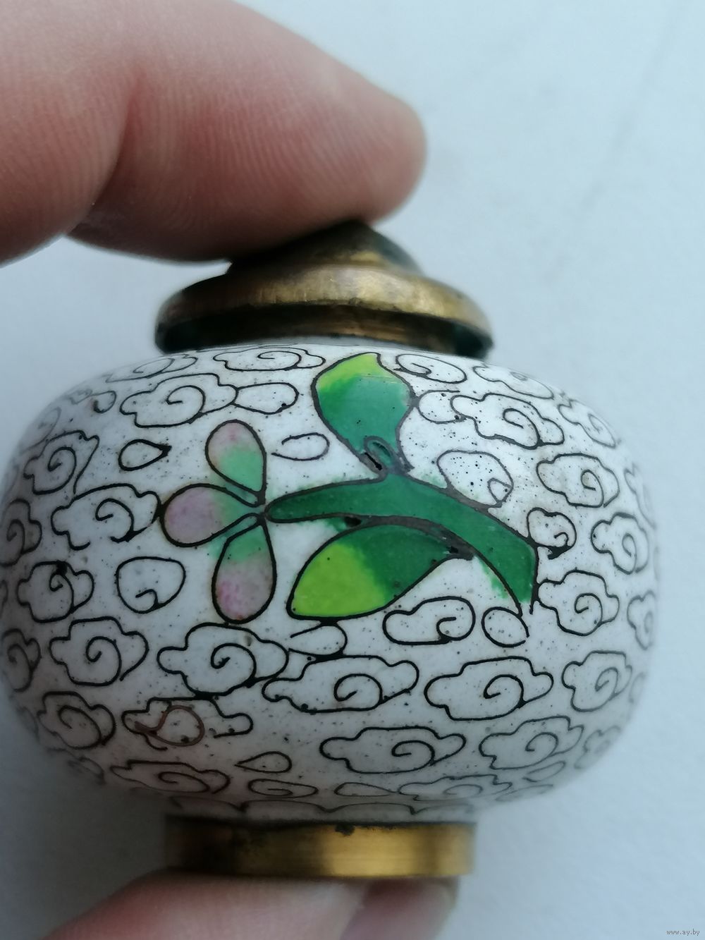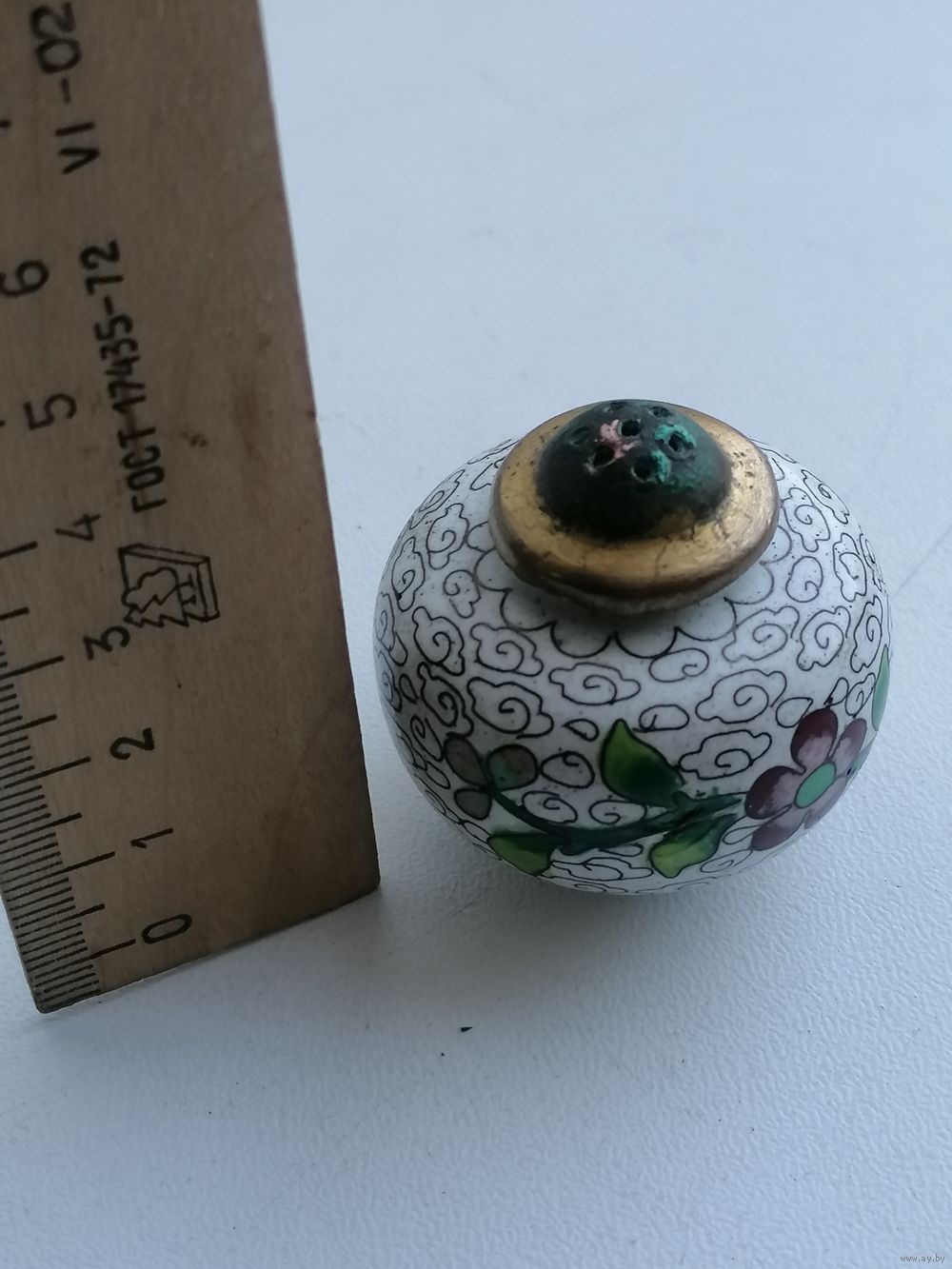 Состояние на фото. В одном месте небольшая потеря поверхностного лака. Не эмали. В остальном хорошенькая