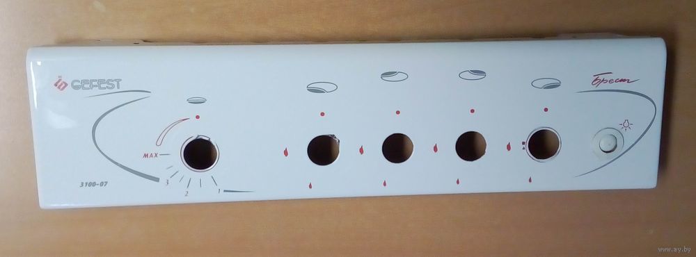 Передняя панель плиты Гефест 3100-07 с кнопкой подсветки.