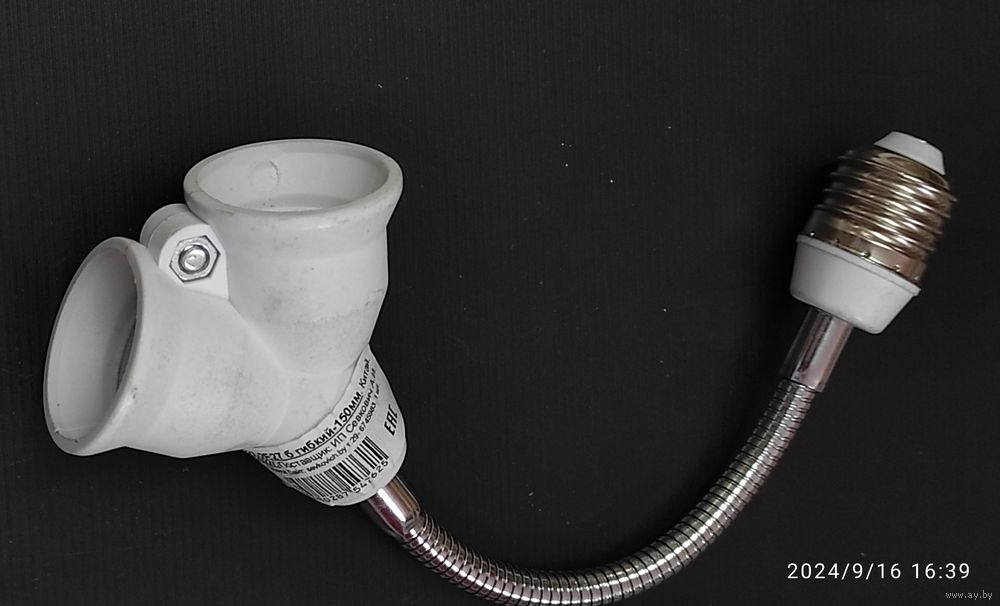 Переходник цоколя Е27 на 2 Е27 гибкий 150мм