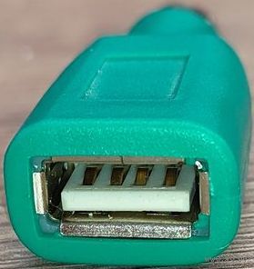 Зелёный переходник для мыши USB(мама type A)-PS/2(папа 6) служит для подключения проводной USB-мыши к порту PS/2 компьютера.