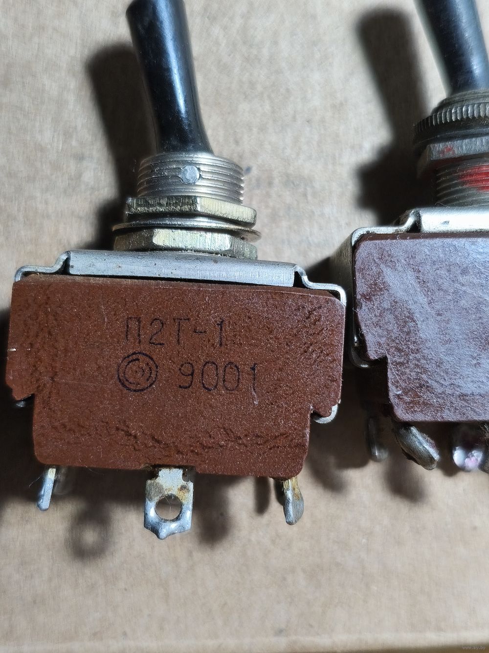Тумблер П2Т-1 перекидной двухполюсный переключатель с двухпозиционной фиксацией ручки управления, со средним положением.