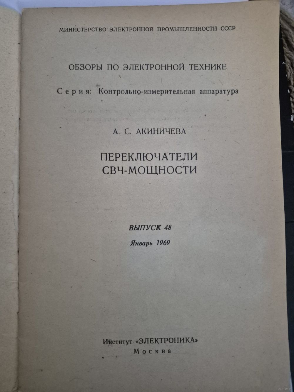Переключатели СВЧ-мощности [Текст] / А. С. Акиничева. - Москва : [б. и.], 1969. - 21, 6 с.; 21 см. - (Обзоры по электронной технике. Серия: Контрольно-измерительная аппаратура/ М-во электронной пром-сти СССР. Ин-т "Электроника"; Вып. 48).