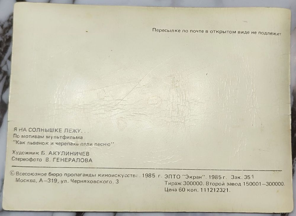 Стереооткрытка "Я на солнышке лежу". "Слехка" потрёпана временем