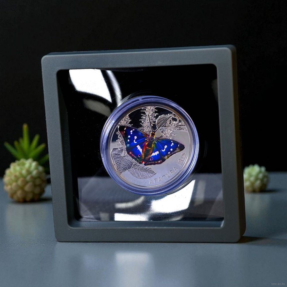 в центре на фоне рельефного изображения растений – выполненная методом тампопечати бабочка Переливница большая; внизу справа надпись: APATURA IRIS.