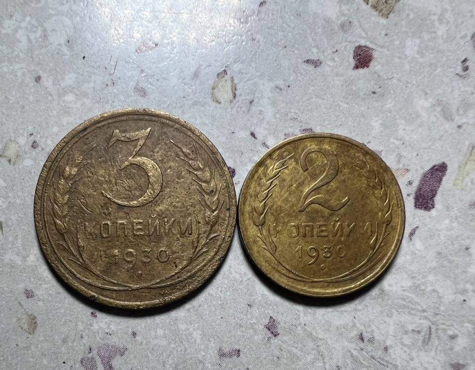 3 копейки 1930 года. Перепутка . Лицевая сторона от 20 копеек. Вытянутые буквы С. В подарок 2 копейки 1930 года с непрочеканом.