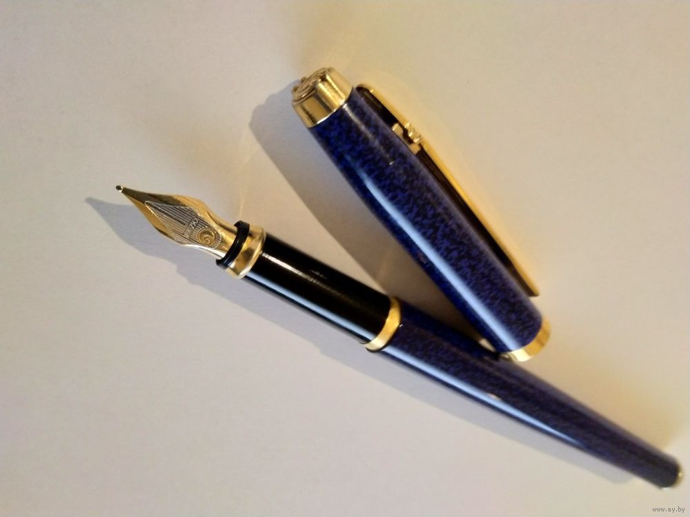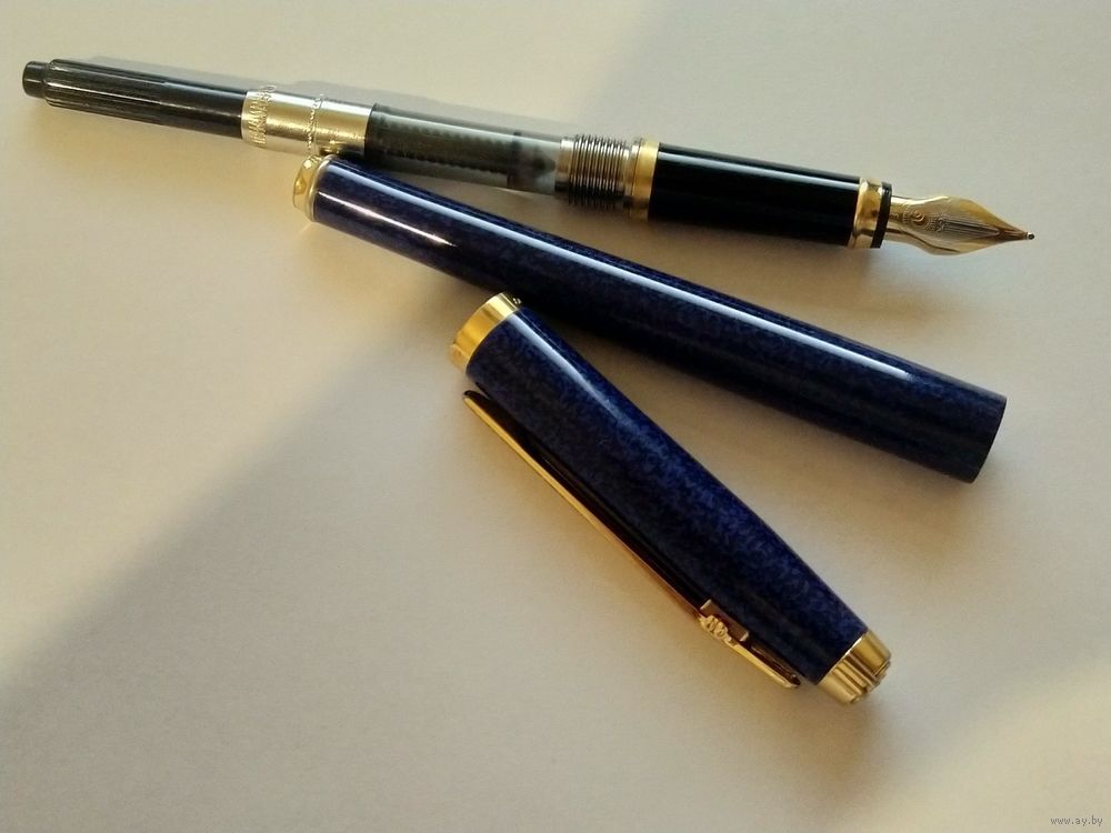 Перьевая ручка Elysee En Vogue Lapis Blue Lacquer известной немецкой, уже не существующей с 2000 года, фирмы. Перо золотое двухцветное 18к (750 проба), размер F (тонкая линия), пишет замечательно, очень мягко. Картриджно-конвертерная система заправки. Колпачек на защелке. На заднюю часть одевается тоже с щелчком. Состояние отличное, есть незначительные следы использования. В комплекте только ручка с конвертером.