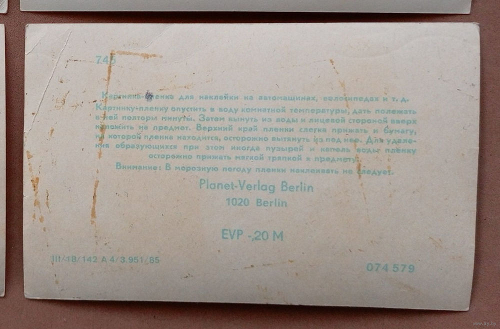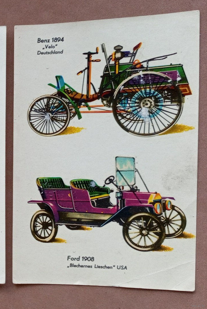 Переводная картинка ГДР (наклейка-карточка) ретро-автомобили. Made in DDR.