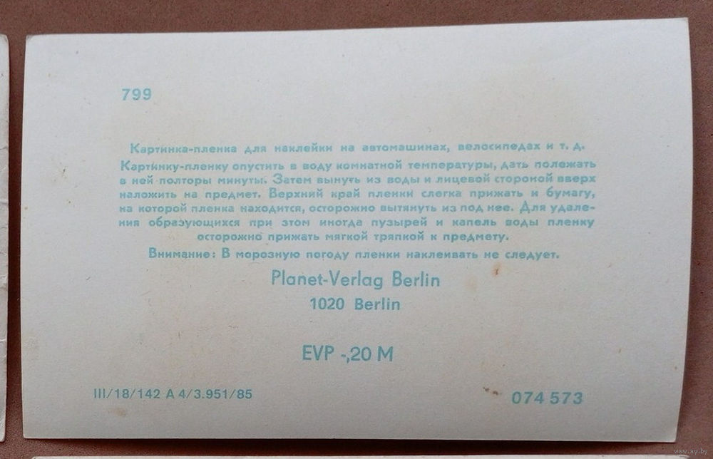 Переводная картинка ГДР (наклейка-карточка) ретро-автомобили. Made in DDR.